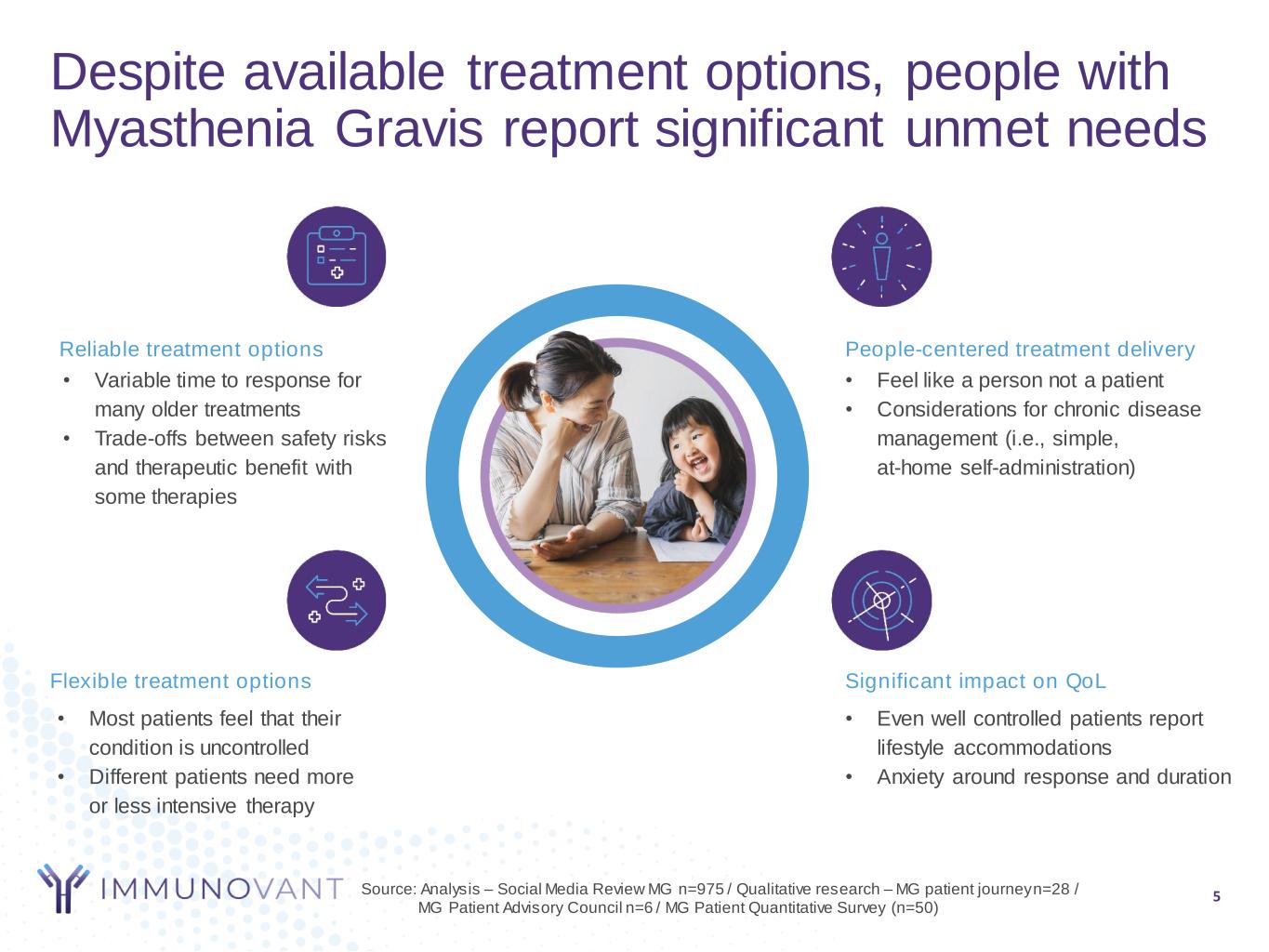 4 Fifteen indications announced by at least one anti-FcRn program Anti-FcRn Market: Potential therapeutic benefit across wide range of indications ENDOCRINOLOGY Thyroid eye disease RHEUMATOLOGY Primary Sjögrens Syndrome Lupus Nephritis Systemic lupus erythematosus Rheumatoid arthritis DERMATOLOGY Bullous pemphigoid Pemphigus foliaceus/ Pemphigus vulgaris NEUROLOGY Myasthenia Gravis Chronic inflammatory demyelinating polyneuropathy Myositis Autoimmune encephalitis Myelin oligodendrocyte glycoprotein antibody disorders (MOG-antibody disorder) HEMATOLOGY Warm autoimmune hemolytic anemia Hemolytic disease of the fetus and newborn Idiopathic thrombocytopenic purpura Source: https://www.clinicaltrials.gov/